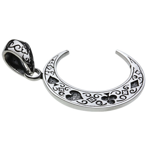 ペンダント/ネックレスグッドバイブレーション 三日月 トランプ ペンダント【cenote p0623】 縦:35mm 横:22mm 厚さ:1mm 重さ:3g 不思議の国のアリスをモチーフにした三日月型のシルバー製ペンダントです。